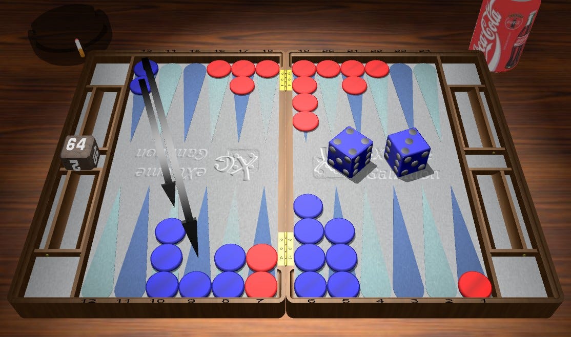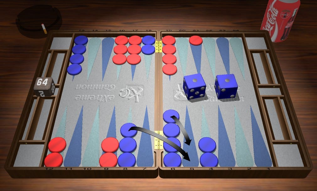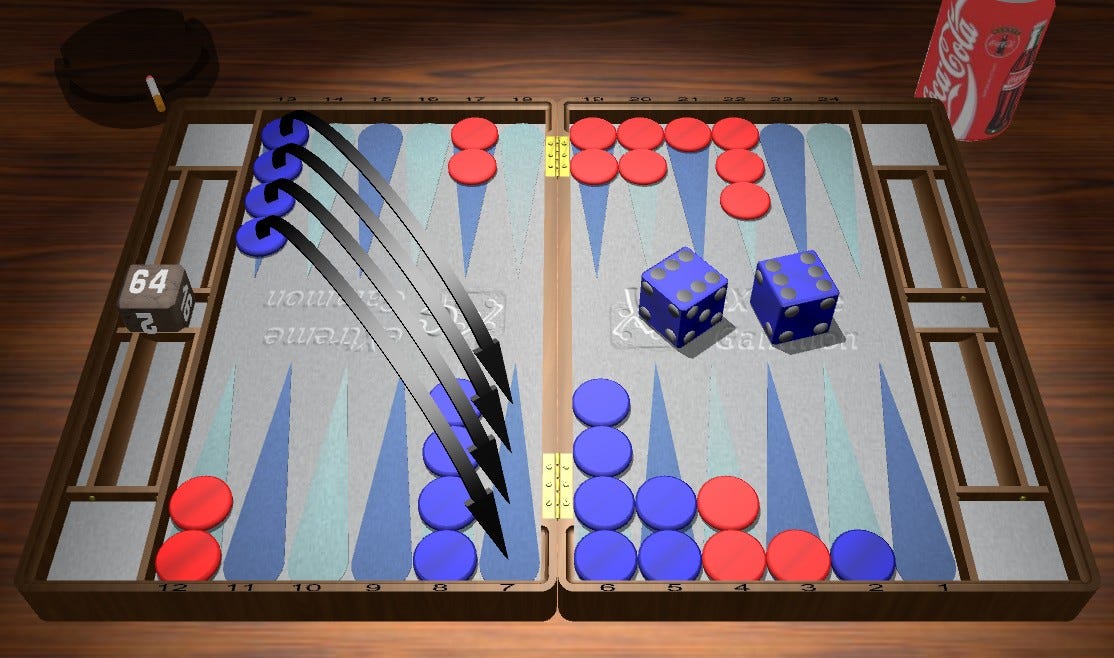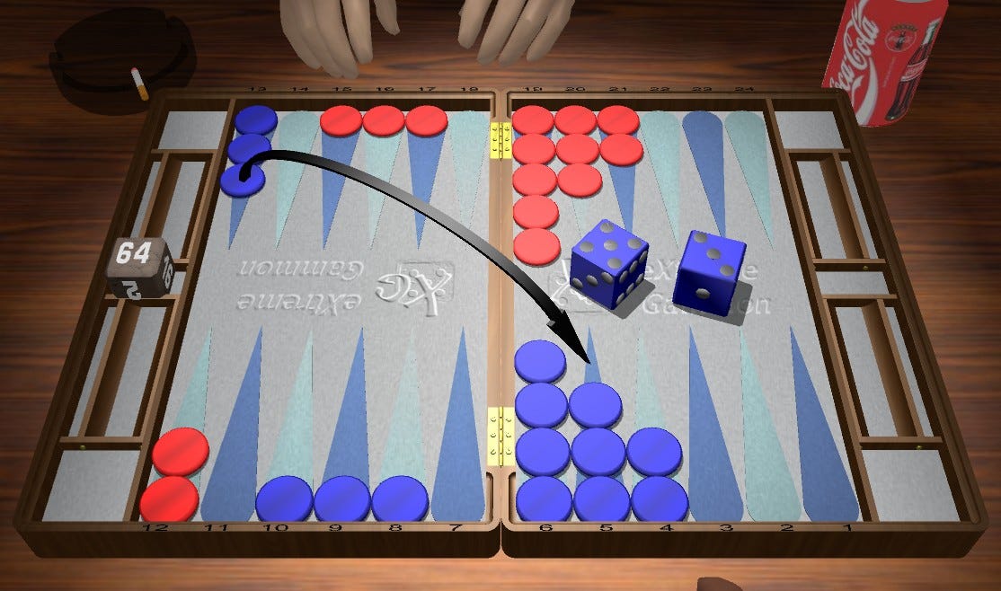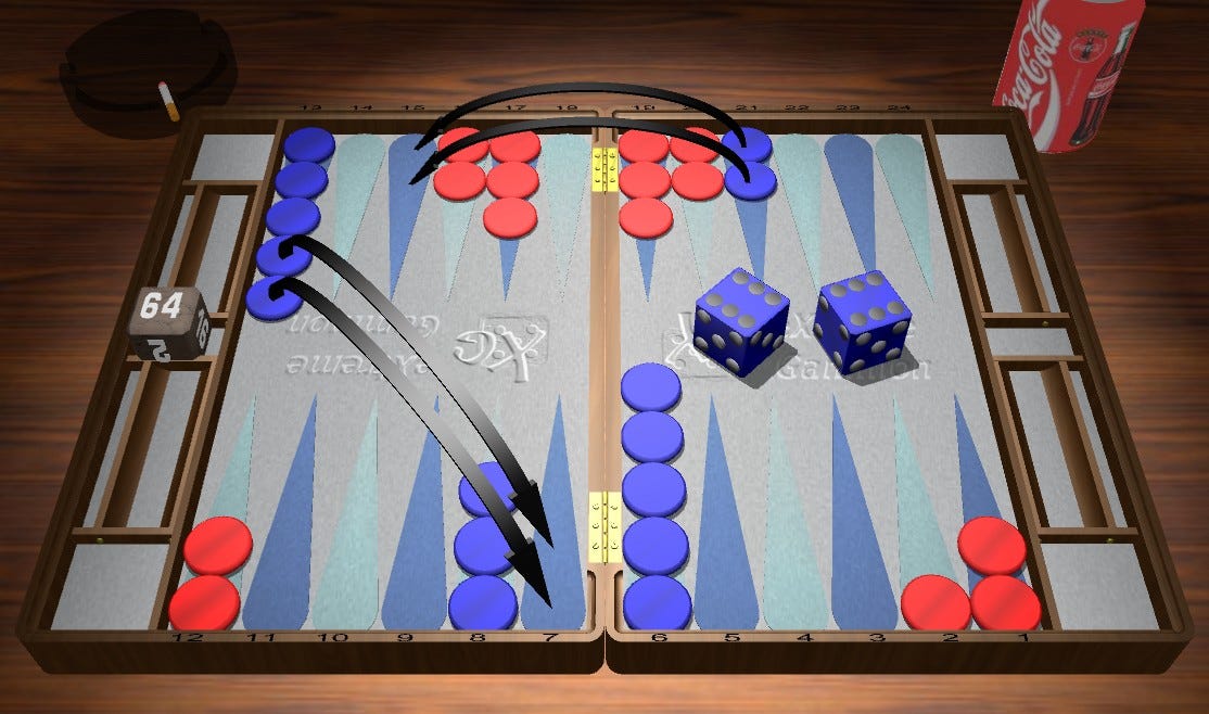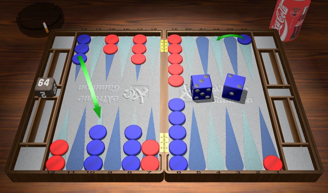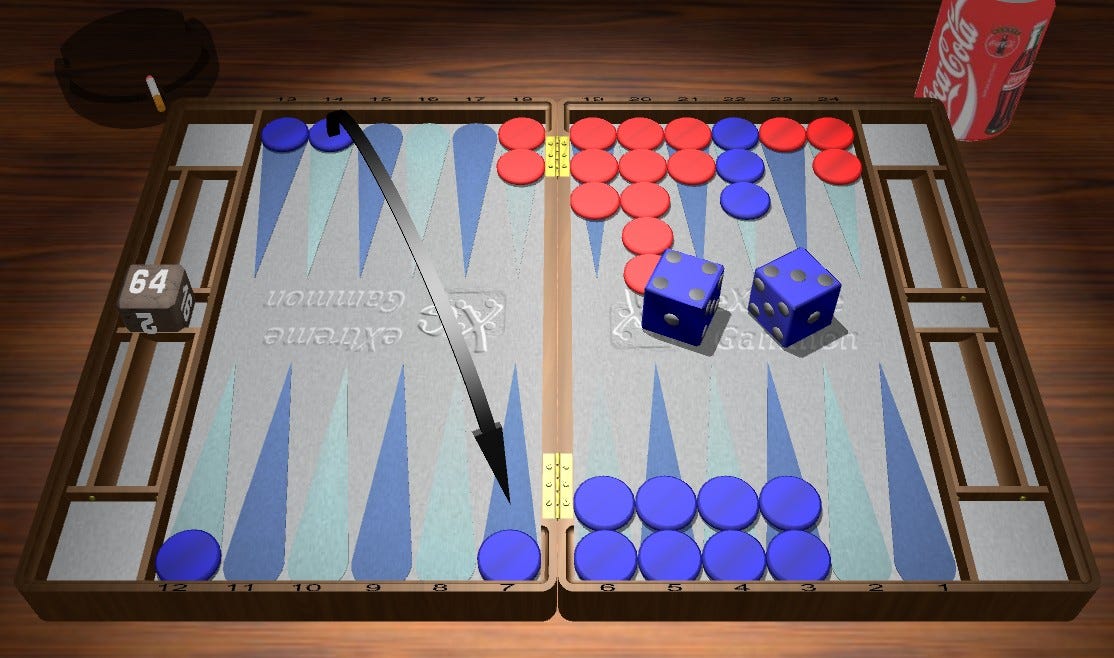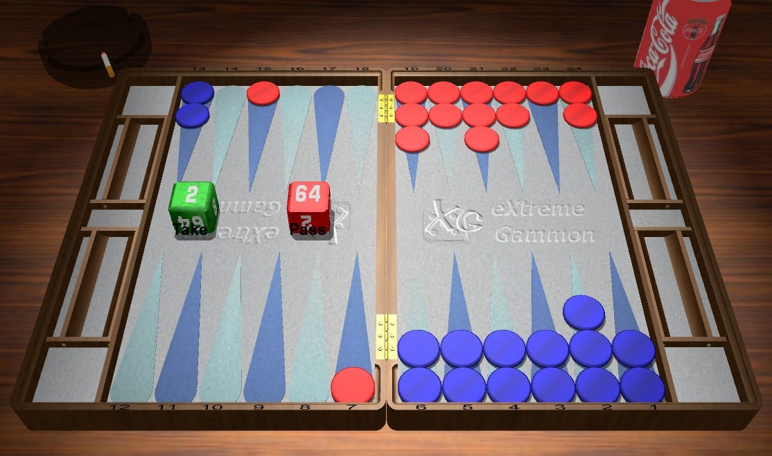 Blue Cube Decision - Double/Take. (66.3%/25.1%/8.5% - Rollout of 2,592 games after Double/Take)