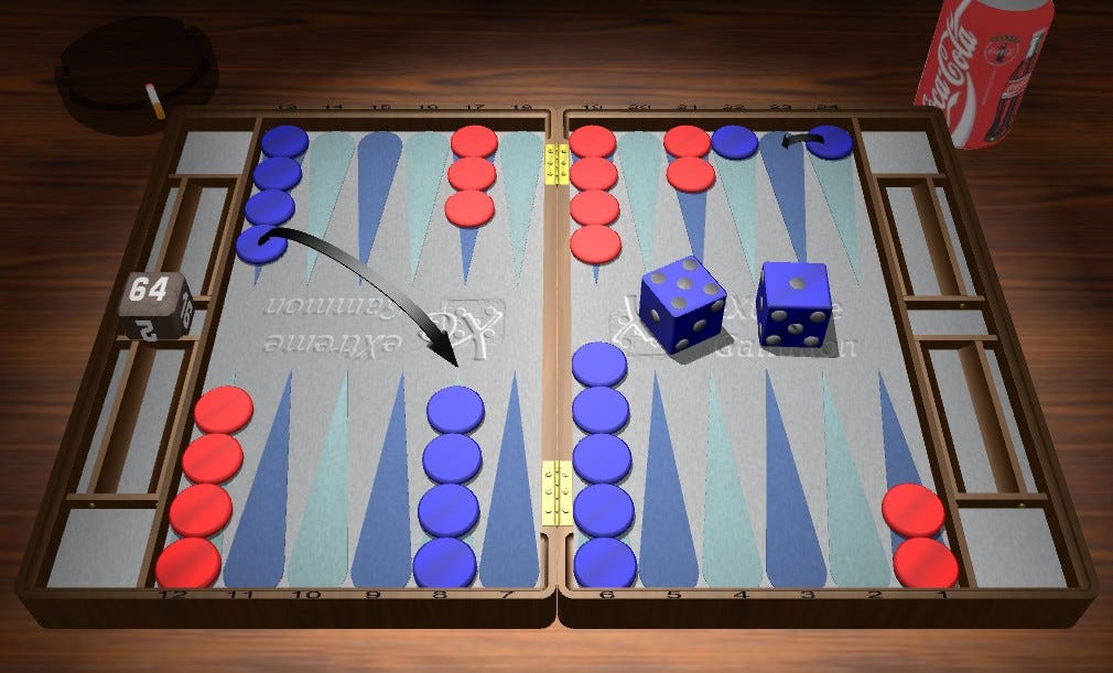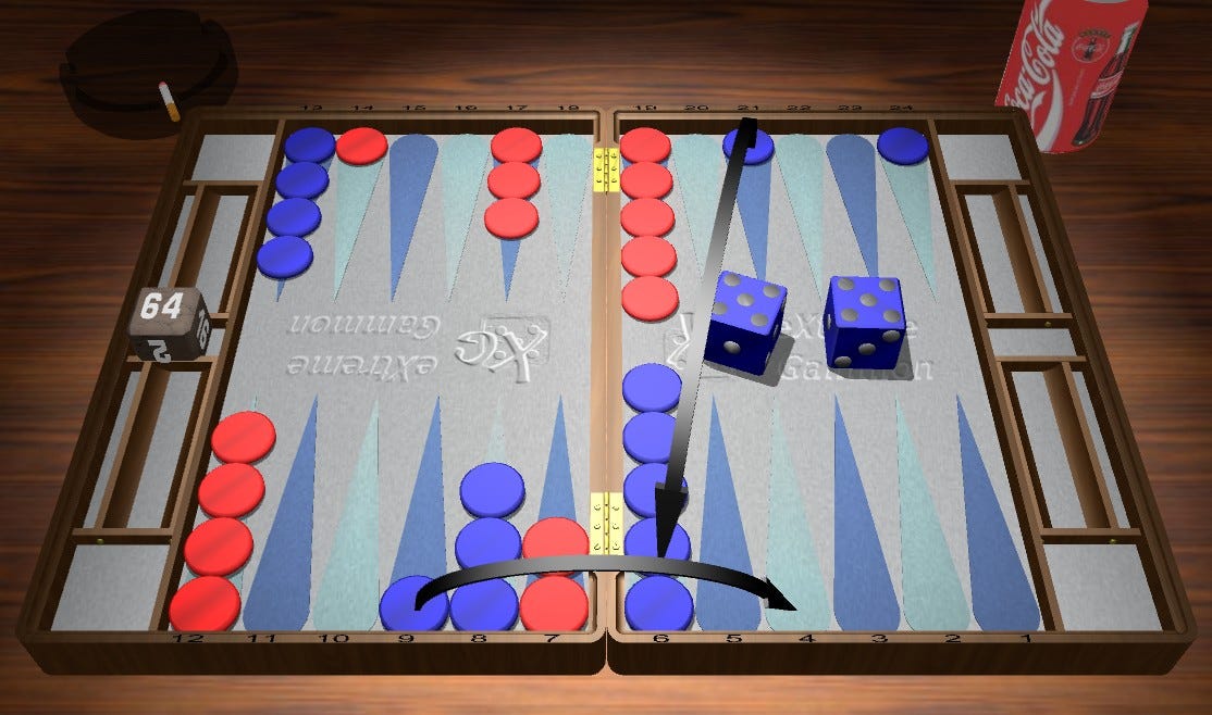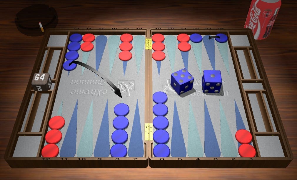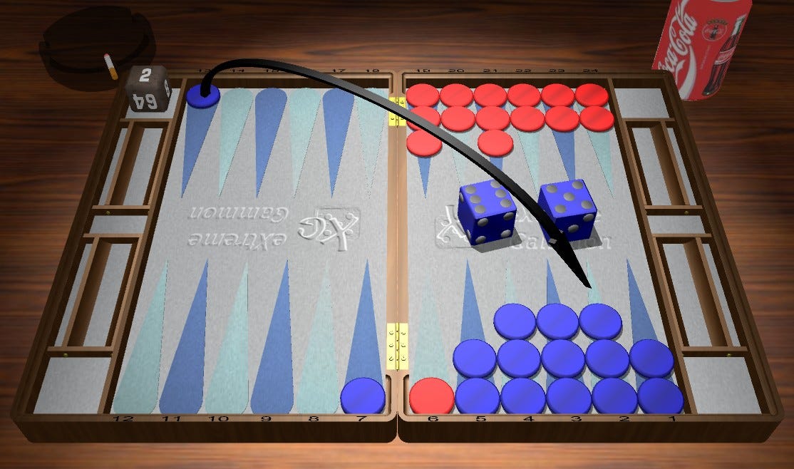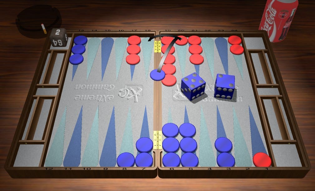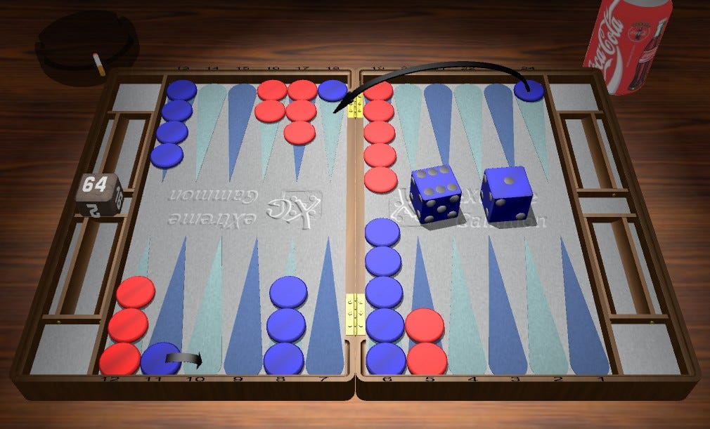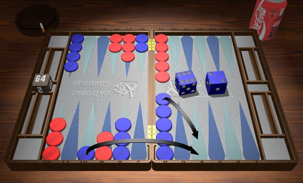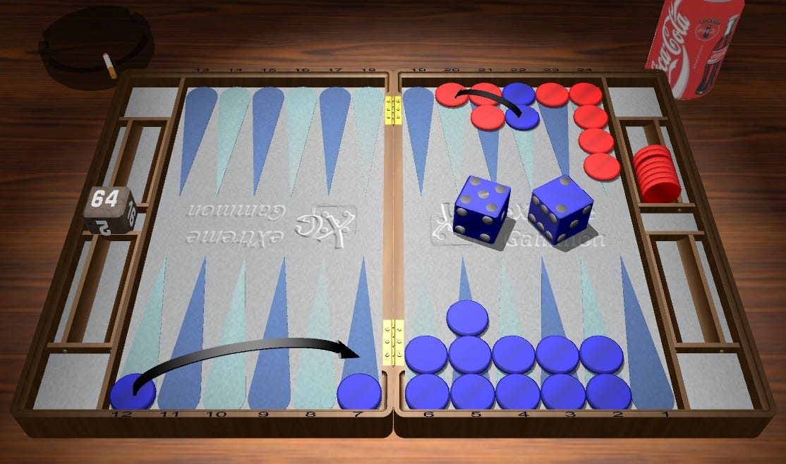 Blue Cube Decision - Double/Take. (66.3%/25.1%/8.5% - Rollout of 2,592 games after Double/Take)