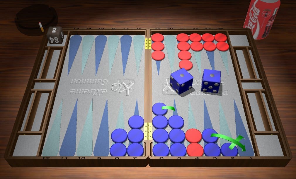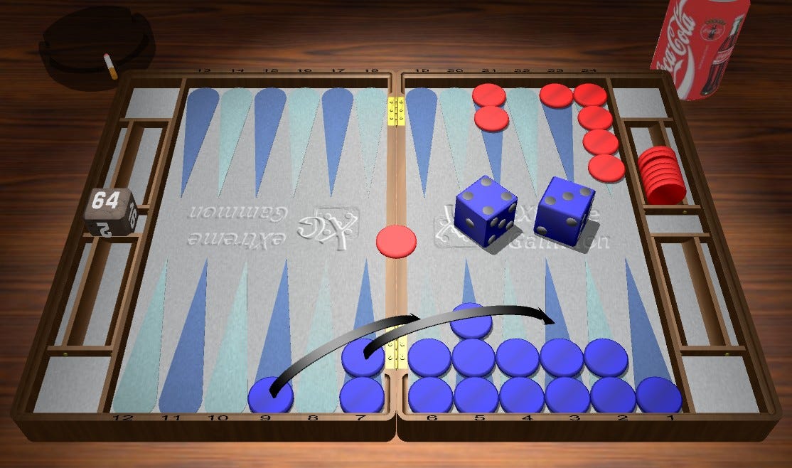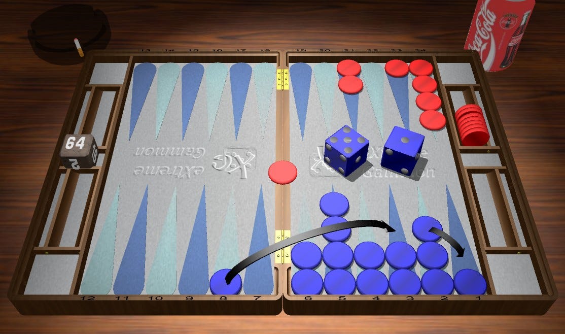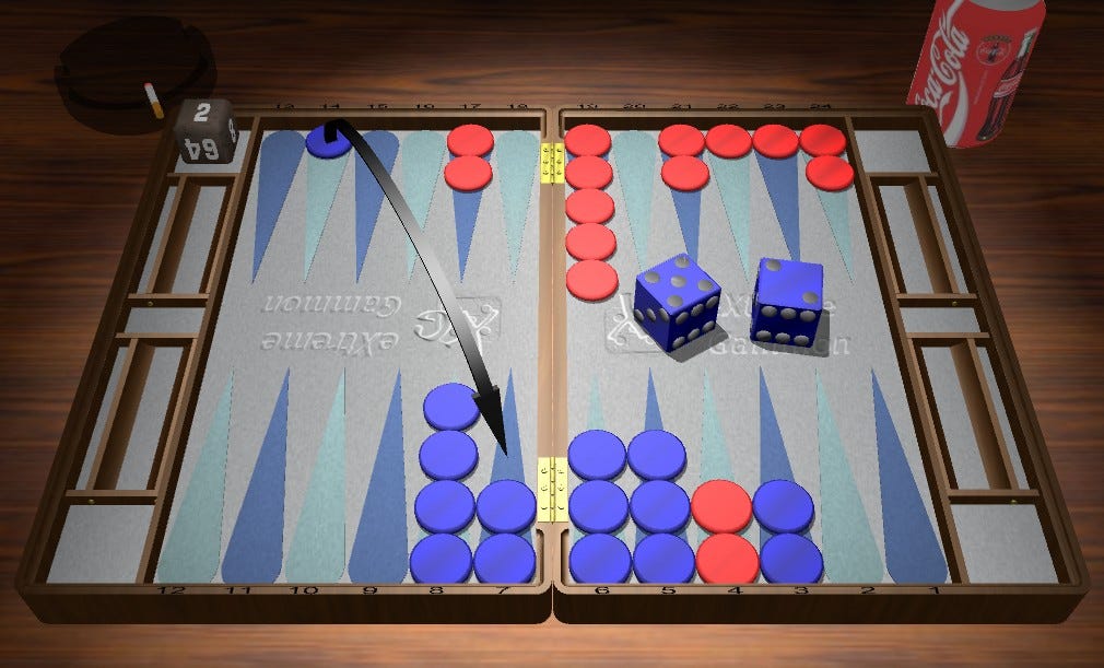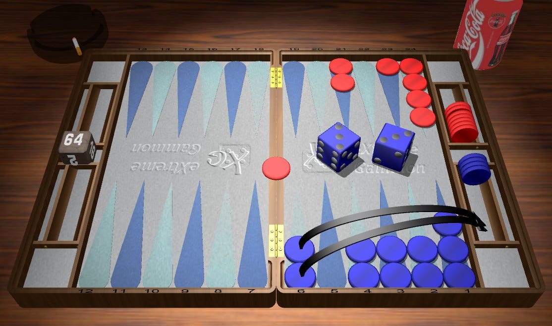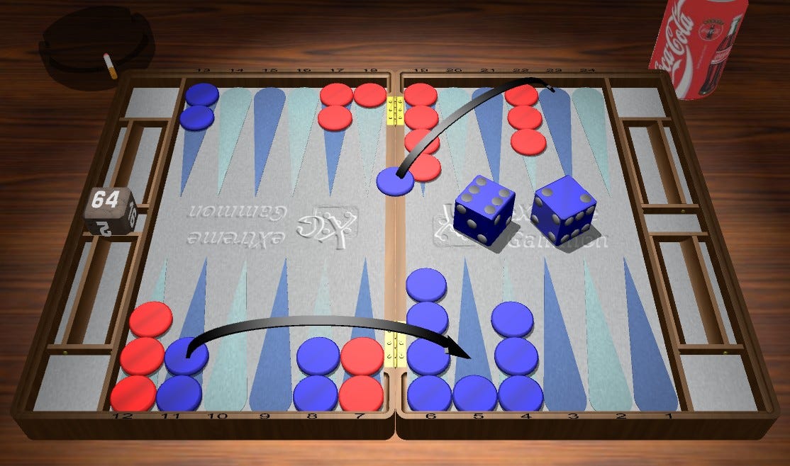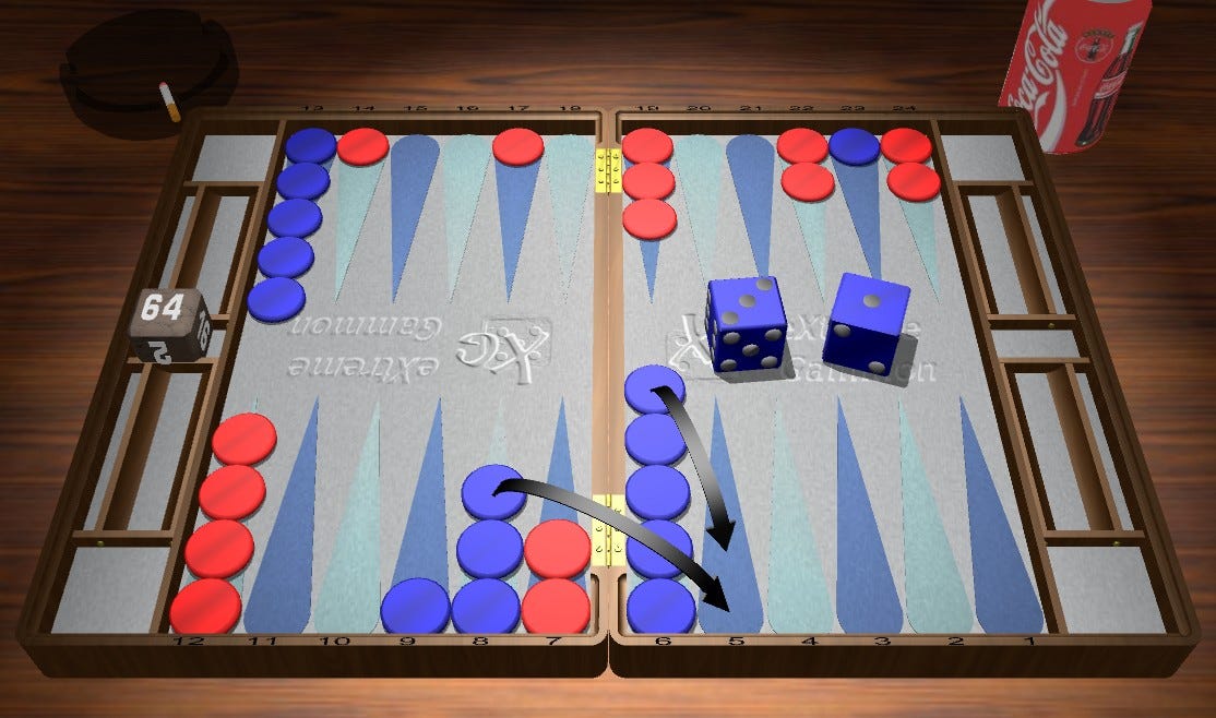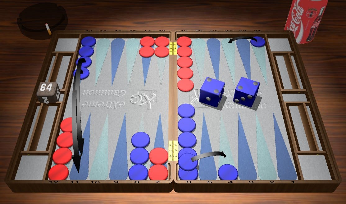 Blue Cube Decision - Double/Take. (66.3%/25.1%/8.5% - Rollout of 2,592 games after Double/Take)