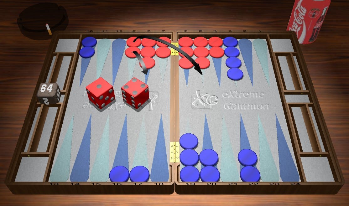 I’d argue that these position call for running more often than many of us think, particularly when we are behind 4 primes. Why? Because once you are out from behind the prime you have the full use of your doubles. 44, 33 and even 22 are above average rolls and can help in a relatively close race, but they are often wasted as a player waits for the perfect roll with which to break an anchor.