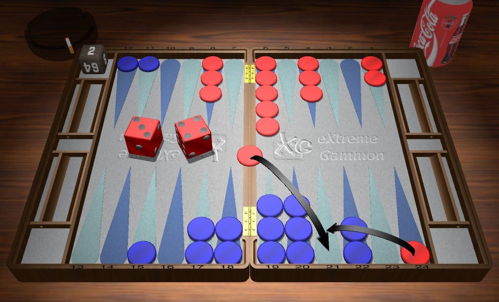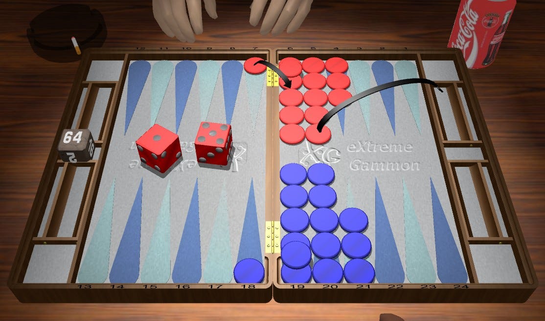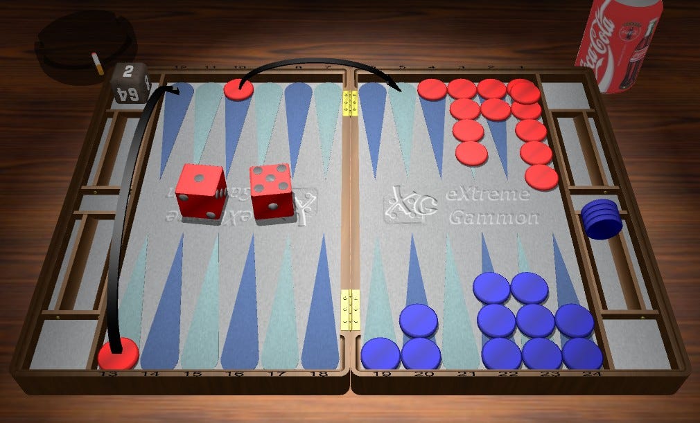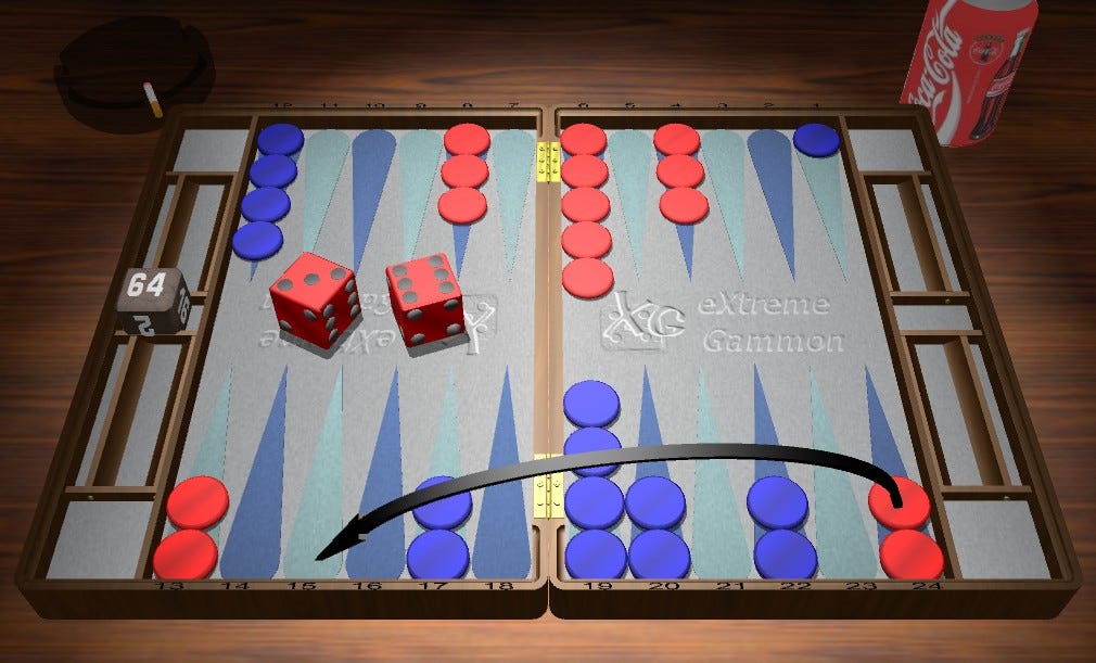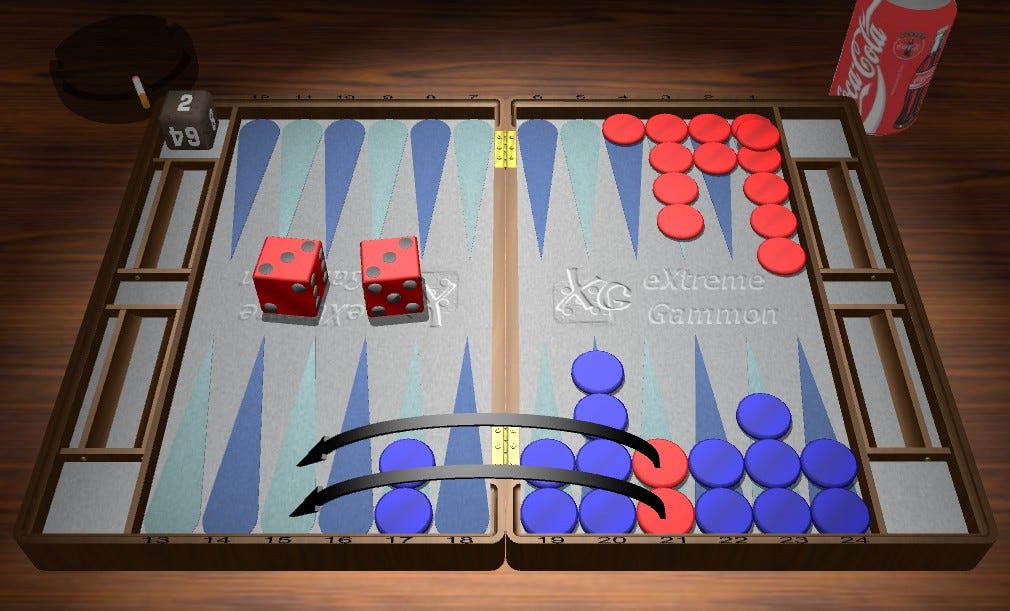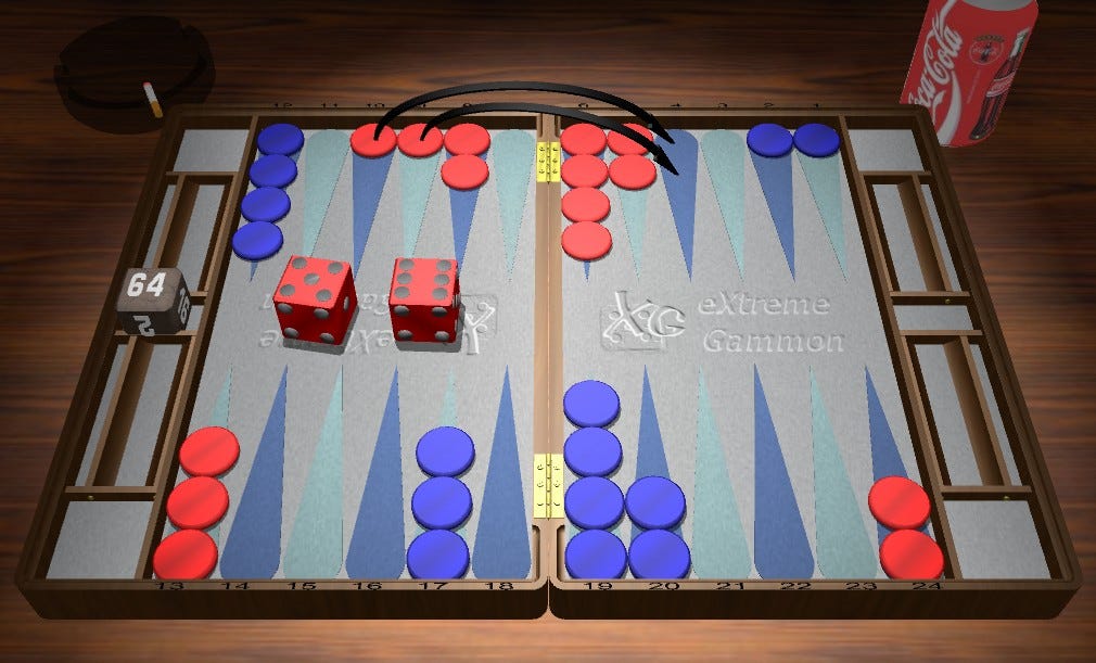 Red rolls 44 - 24/20 (2), 13/9 (2) (44.1%/5.4%/11.7% - ++). Red responds by anchoring and eliminates the majority of Blue’s gammons. It’s now critical for Blue to either anchor or escape its outfield checker.