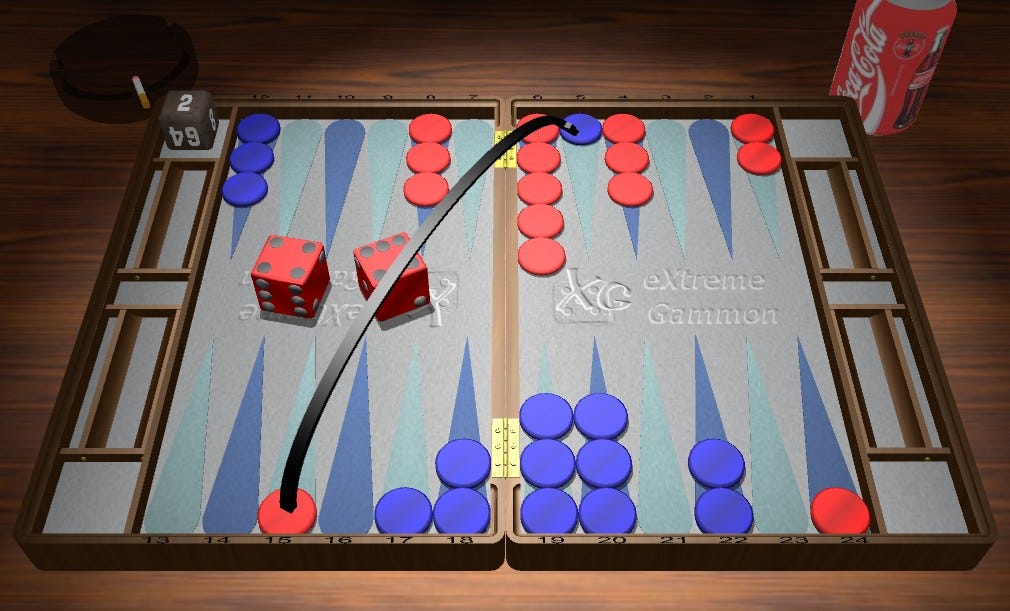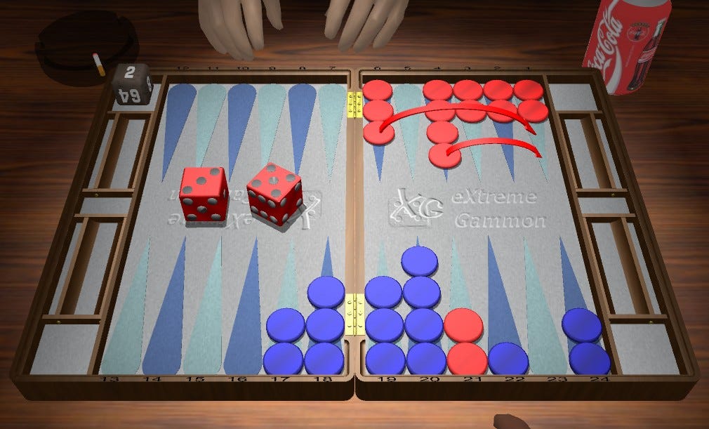 Blue rolls 42 - 9/7, 8/4 (13.8%/0.5%/26.2% - ++) O’Hagan makes his four point and slots the back of the prime, as his board begins to take shape.