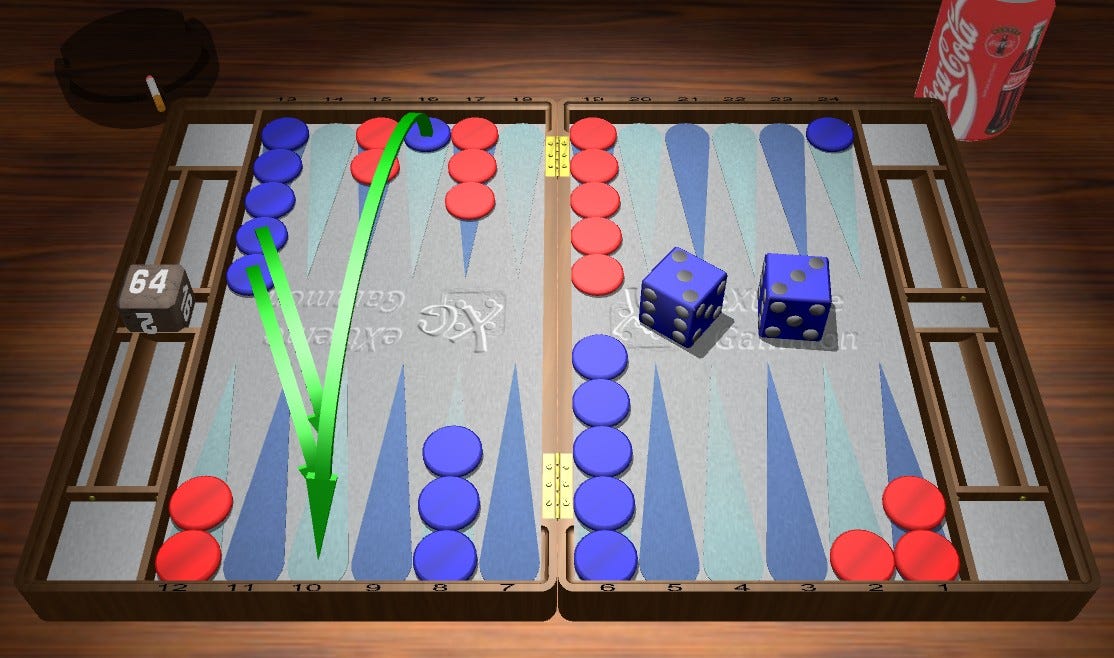 Blue rolls 52 - 20/13 (73.5%/0.0%/1.8% - ++) O’Hagan begins making his way around the board.